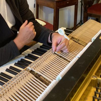 Ein Klavierbauer erneuert die Filze der Hämmerchen. Er bringt Machanik und Klaviatur auf Vordermann! Sommer 2022.